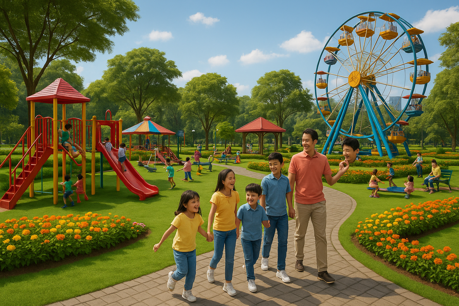 Masih di kawasan Ancol, Allianz Eco Park menawarkan pengalaman berbeda bagi keluarga yang ingin berwisata sekaligus belajar tentang alam. Area seluas 34 hektare ini menggabungkan konsep taman hijau, permainan outdoor, dan edukasi lingkungan.